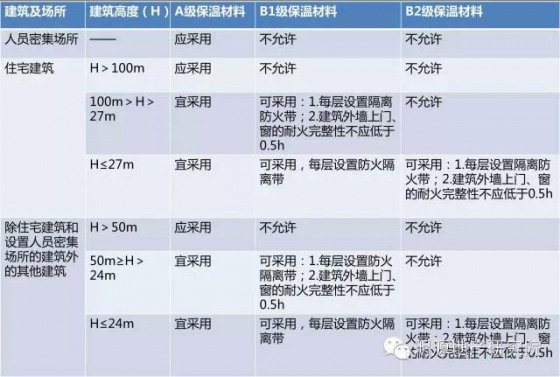 注釋:A級材料屬于不燃材料,火災危險性很低,不會導致火焰蔓延,因此在建筑內(nèi)外保溫系統(tǒng)中,盡量選用A級保溫材料。
