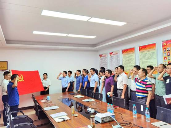 最后,全體黨員面對鮮紅的中國共產(chǎn)黨黨旗,莊嚴(yán)地舉起右手,握緊拳頭,集體宣讀入黨誓詞,重溫入黨時的莊嚴(yán)承諾和堅定決心。紛紛表示,要不斷提高黨性修養(yǎng),堅定理想信念,自覺踐行黨的宗旨,充分發(fā)揮先鋒模范作用,切實把初心使命變成銳意進(jìn)取、開拓創(chuàng)新的精氣神和埋頭苦干、真抓實干的自覺行動,以優(yōu)異的成績向建黨99周年獻(xiàn)禮。